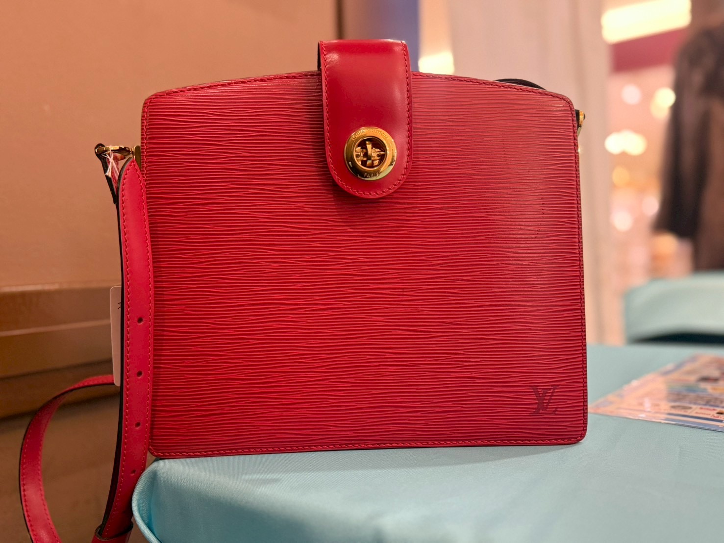 今回お持ち込みいただいたお品物は、鮮やかなレッドカラーが印象的で、エピレザー特有のハリや型押しも良好な状態でした。